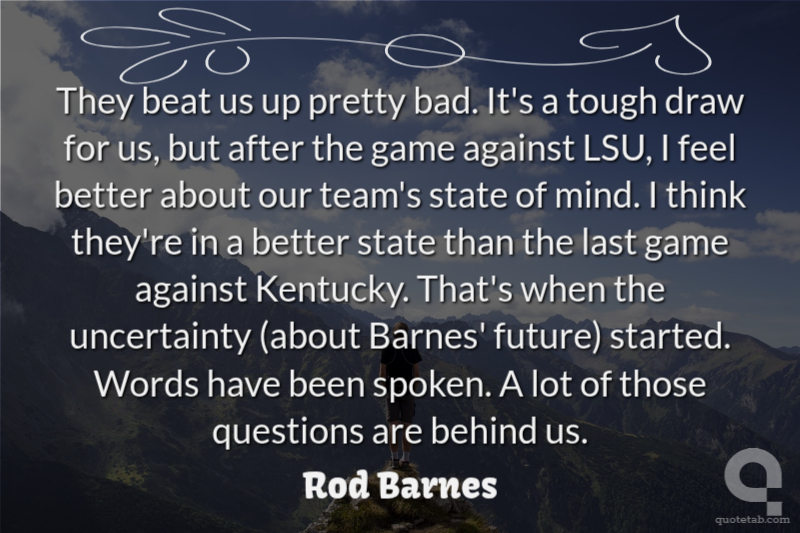 They beat us up pretty bad. It's a tough draw for us, but after the game against LSU, I feel better about our team's state of mind. I think they're in a better state than the last game against Kentucky. That's when the uncertainty (about Barnes' future) started. Words have been spoken. A lot of those questions are behind us.