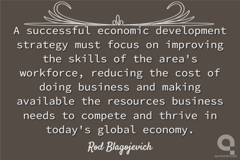 A successful economic development strategy must focus on improving the skills of the area's workforce, reducing the cost of doing business and making available the resources business needs to compete and thrive in today's global economy.