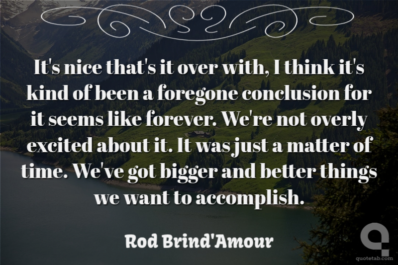 It's nice that's it over with, I think it's kind of been a foregone conclusion for it seems like forever. We're not overly excited about it. It was just a matter of time. We've got bigger and better things we want to accomplish.