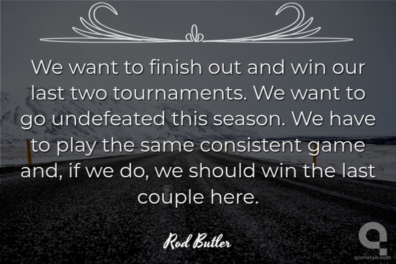 We want to finish out and win our last two tournaments. We want to go undefeated this season. We have to play the same consistent game and, if we do, we should win the last couple here.