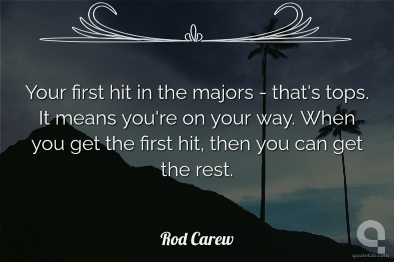 Your first hit in the majors - that's tops. It means you're on your way. When you get the first hit, then you can get the rest.
