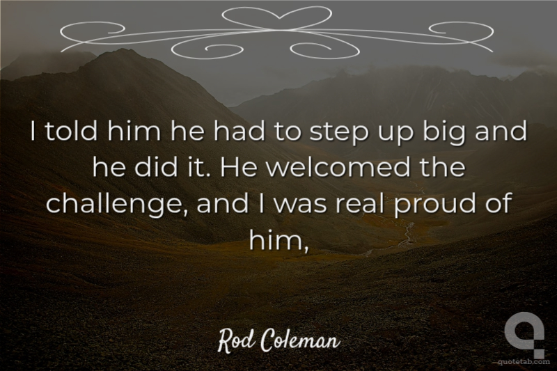 I told him he had to step up big and he did it. He welcomed the challenge, and I was real proud of him,