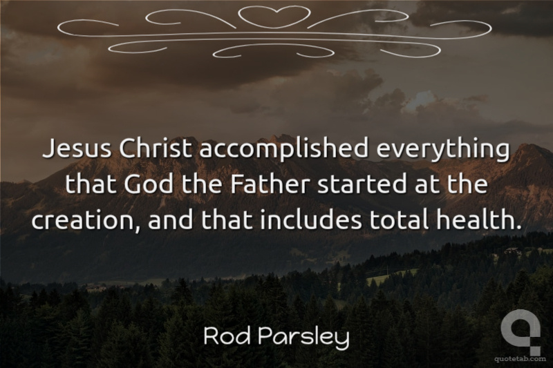 Jesus Christ accomplished everything that God the Father started at the creation, and that includes total health.