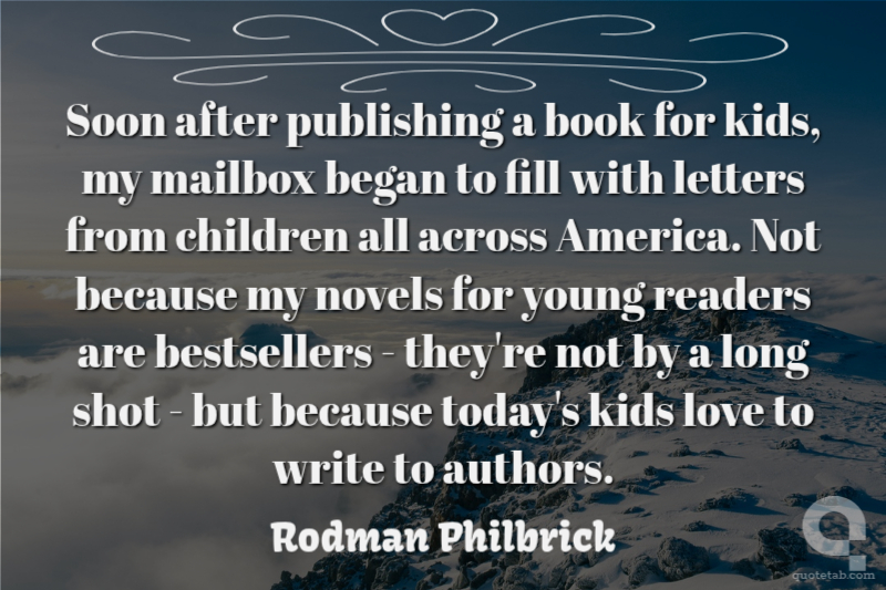 Soon after publishing a book for kids, my mailbox began to fill with letters from children all across America. Not because my novels for young readers are bestsellers - they're not by a long shot - but because today's kids love to write to authors.