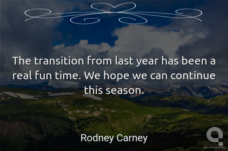 The transition from last year has been a real fun time. We hope we can continue this season.