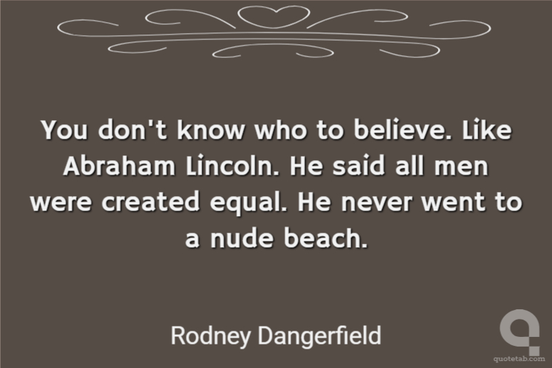 You don't know who to believe. Like Abraham Lincoln. He said all men were created equal. He never went to a nude beach.