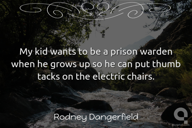 My kid wants to be a prison warden when he grows up so he can put thumb tacks on the electric chairs.