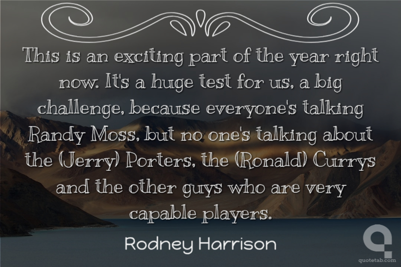 This is an exciting part of the year right now. It's a huge test for us, a big challenge, because everyone's talking Randy Moss, but no one's talking about the (Jerry) Porters, the (Ronald) Currys and the other guys who are very capable players.