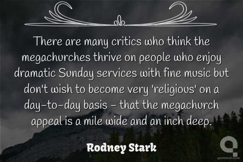 There are many critics who think the megachurches thrive on people who enjoy dramatic Sunday services with fine music but don't wish to become very 'religious' on a day-to-day basis - that the megachurch appeal is a mile wide and an inch deep.