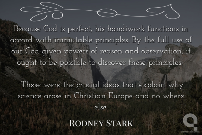Because God is perfect, his handiwork functions in accord with immutable principles. By the full use of our God-given powers of reason and observation, it ought to be possible to discover these principles. These were the crucial ideas that explain why science arose in Christian Europe and no where else.
