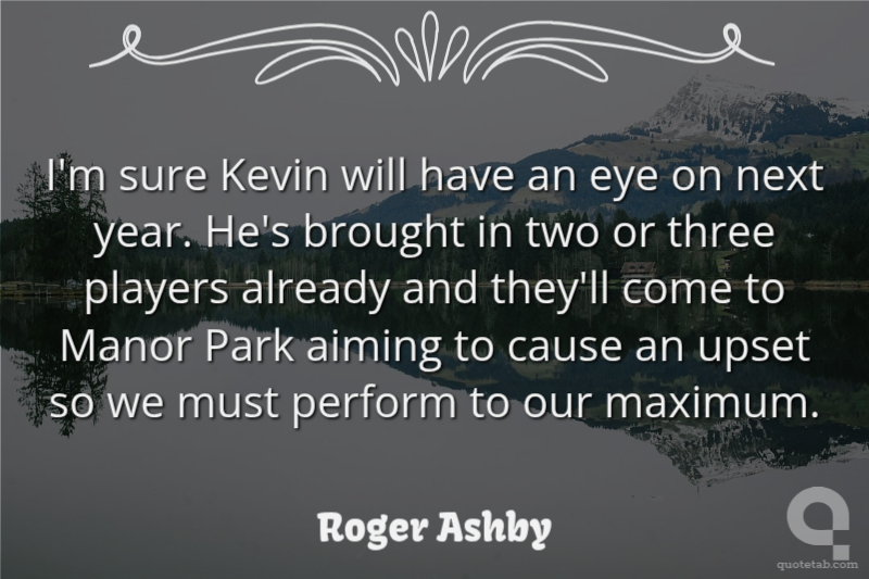 I'm sure Kevin will have an eye on next year. He's brought in two or three players already and they'll come to Manor Park aiming to cause an upset so we must perform to our maximum.