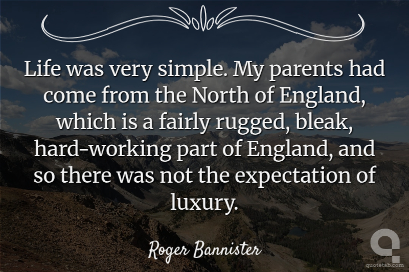 Life was very simple. My parents had come from the North of England, which is a fairly rugged, bleak, hard-working part of England, and so there was not the expectation of luxury.