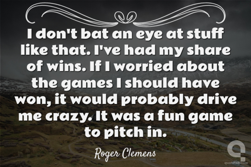 I don't bat an eye at stuff like that. I've had my share of wins. If I worried about the games I should have won, it would probably drive me crazy. It was a fun game to pitch in.