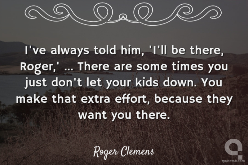 I've always told him, 'I'll be there, Roger,' ... There are some times you just don't let your kids down. You make that extra effort, because they want you there.