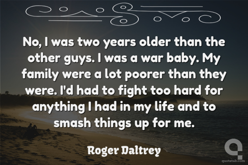 No, I was two years older than the other guys. I was a war baby. My family were a lot poorer than they were. I'd had to fight too hard for anything I had in my life and to smash things up for me.
