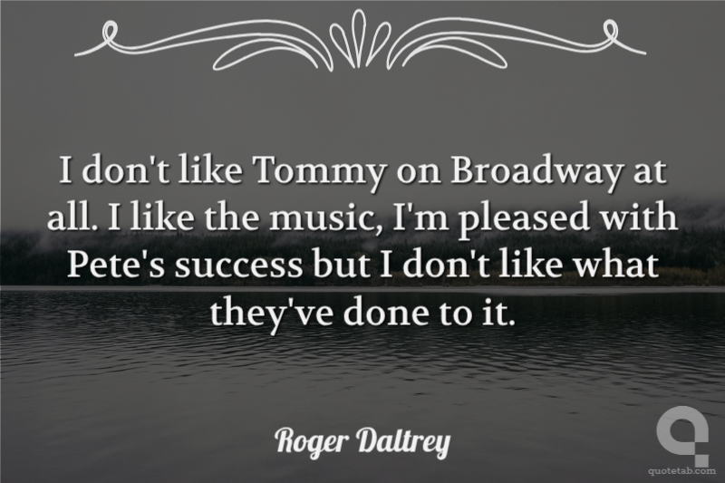 I don't like Tommy on Broadway at all. I like the music, I'm pleased with Pete's success but I don't like what they've done to it.