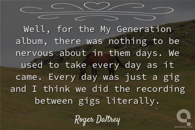 Well, for the My Generation album, there was nothing to be nervous about in them days. We used to take every day as it came. Every day was just a gig and I think we did the recording between gigs literally.