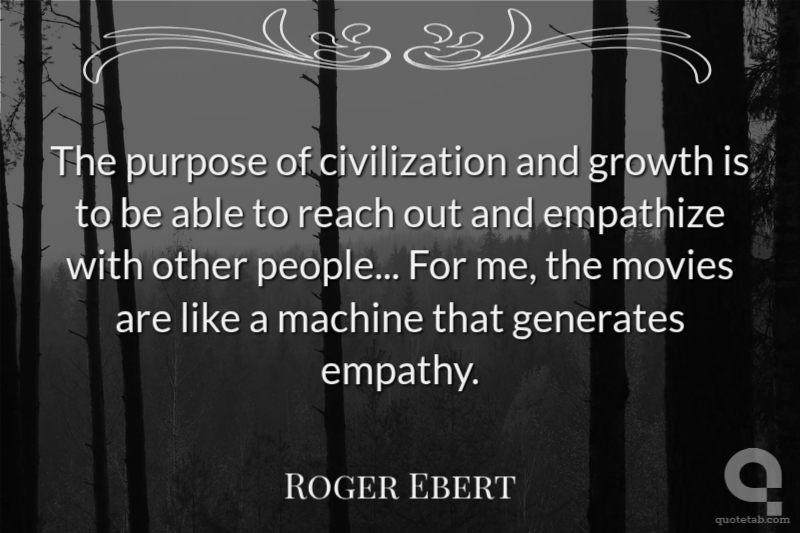 The purpose of civilization and growth is to be able to reach out and empathize with other people... For me, the movies are like a machine that generates empathy.