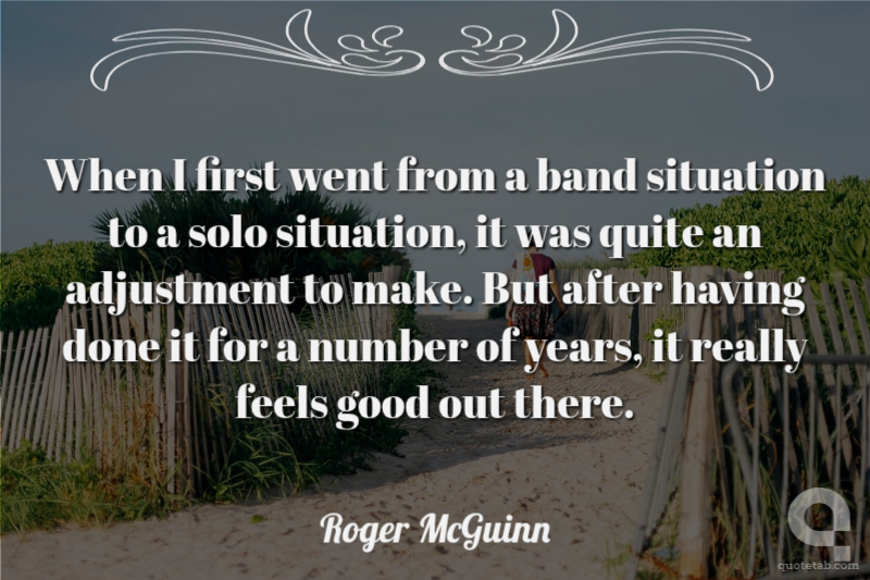 When I first went from a band situation to a solo situation, it was quite an adjustment to make. But after having done it for a number of years, it really feels good out there.