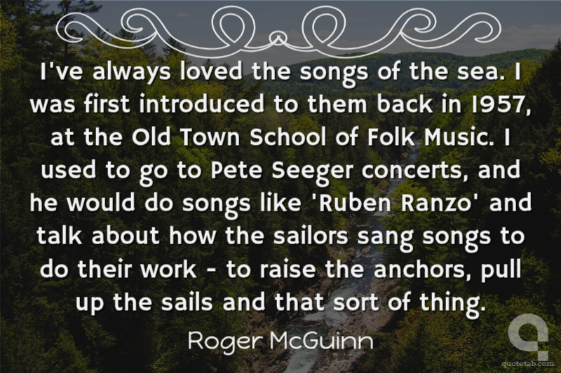 I've always loved the songs of the sea. I was first introduced to them back in 1957, at the Old Town School of Folk Music. I used to go to Pete Seeger concerts, and he would do songs like 'Ruben Ranzo' and talk about how the sailors sang songs to do their work - to raise the anchors, pull up the sails and that sort of thing.