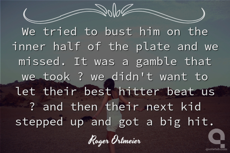 We tried to bust him on the inner half of the plate and we missed. It was a gamble that we took ? we didn't want to let their best hitter beat us ? and then their next kid stepped up and got a big hit.