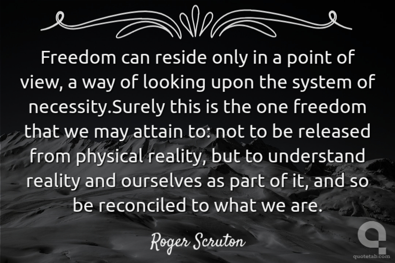 Freedom can reside only in a point of view, a way of looking upon the system of necessity.Surely this is the one freedom that we may attain to: not to be released from physical reality, but to understand reality and ourselves as part of it, and so be reconciled to what we are.