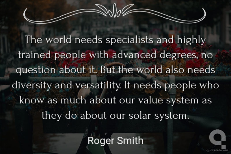 The world needs specialists and highly trained people with advanced degrees, no question about it. But the world also needs diversity and versatility. It needs people who know as much about our value system as they do about our solar system.