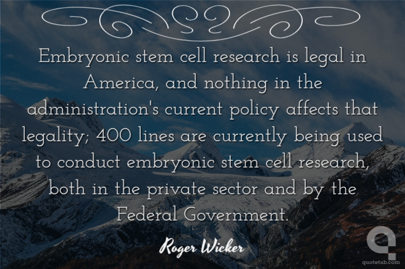 Embryonic stem cell research is legal in America, and nothing in the administration's current policy affects that legality; 400 lines are currently being used to conduct embryonic stem cell research, both in the private sector and by the Federal Government.