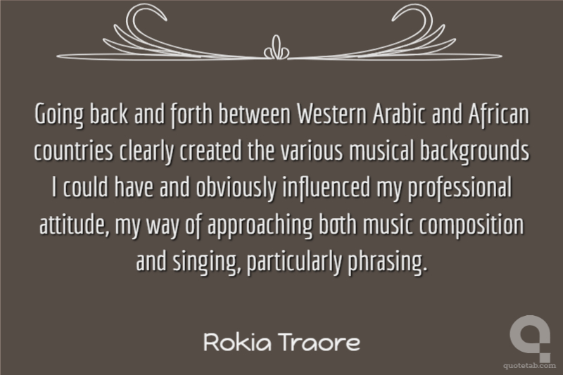 Going back and forth between Western Arabic and African countries clearly created the various musical backgrounds I could have and obviously influenced my professional attitude, my way of approaching both music composition and singing, particularly phrasing.