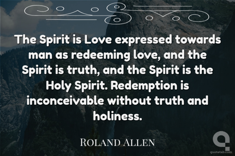 The Spirit is Love expressed towards man as redeeming love, and the Spirit is truth, and the Spirit is the Holy Spirit. Redemption is inconceivable without truth and holiness.