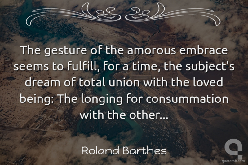 The gesture of the amorous embrace seems to fulfill, for a time, the subject's dream of total union with the loved being: The longing for consummation with the other...