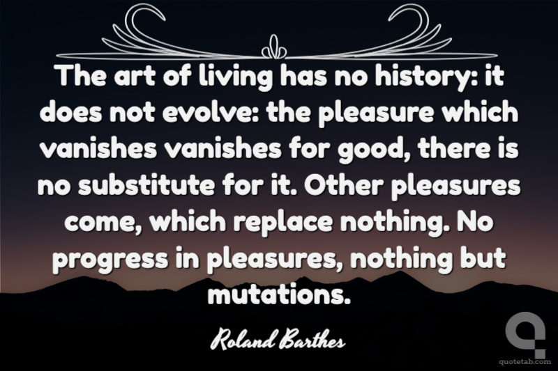 The art of living has no history: it does not evolve: the pleasure which vanishes vanishes for good, there is no substitute for it. Other pleasures come, which replace nothing. No progress in pleasures, nothing but mutations.