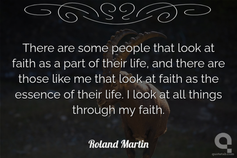 There are some people that look at faith as a part of their life, and there are those like me that look at faith as the essence of their life. I look at all things through my faith.
