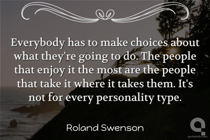 Everybody has to make choices about what they're going to do. The people that enjoy it the most are the people that take it where it takes them. It's not for every personality type.