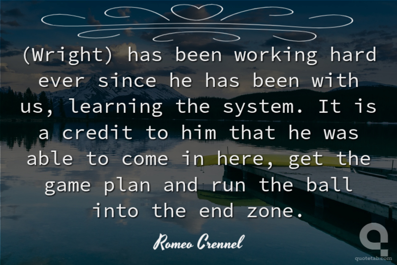(Wright) has been working hard ever since he has been with us, learning the system. It is a credit to him that he was able to come in here, get the game plan and run the ball into the end zone.