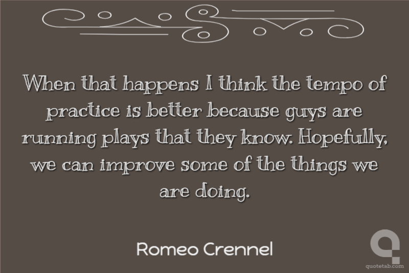 When that happens I think the tempo of practice is better because guys are running plays that they know. Hopefully, we can improve some of the things we are doing.