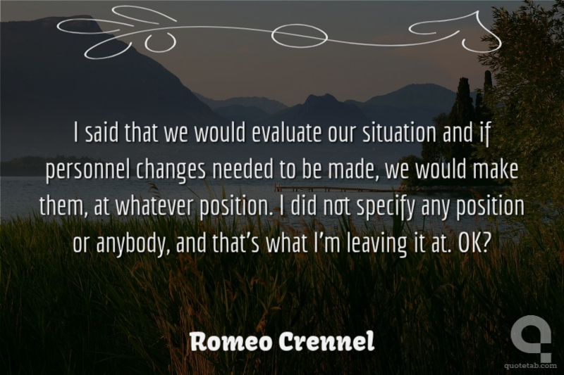 I said that we would evaluate our situation and if personnel changes needed to be made, we would make them, at whatever position. I did not specify any position or anybody, and that's what I'm leaving it at. OK?