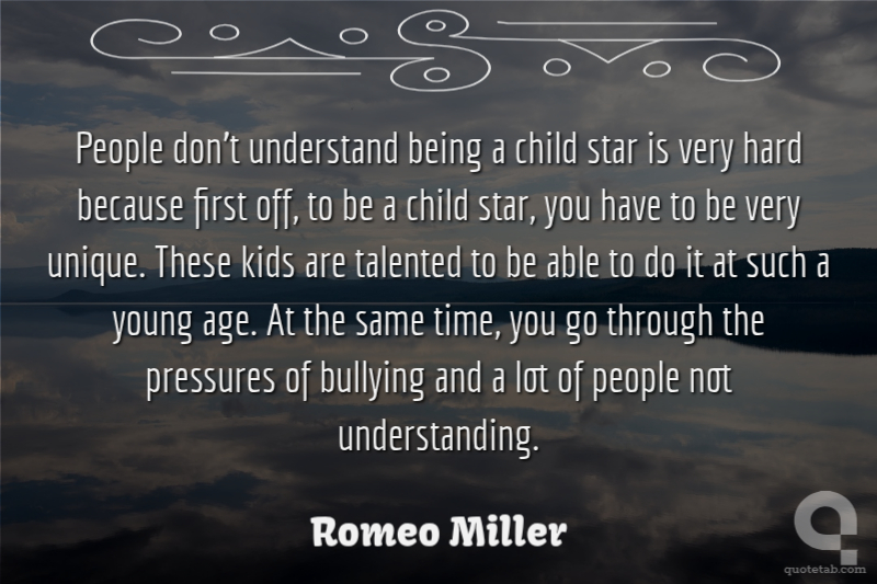 People don't understand being a child star is very hard because first off, to be a child star, you have to be very unique. These kids are talented to be able to do it at such a young age. At the same time, you go through the pressures of bullying and a lot of people not understanding.