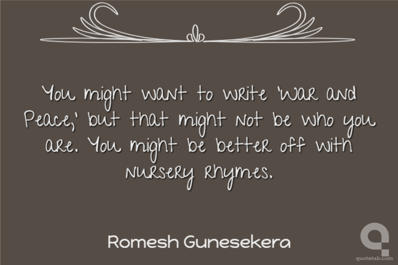 You might want to write 'War and Peace,' but that might not be who you are. You might be better off with nursery rhymes.
