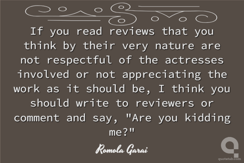 If you read reviews that you think by their very nature are not respectful of the actresses involved or not appreciating the work as it should be, I think you should write to reviewers or comment and say, "Are you kidding me?"