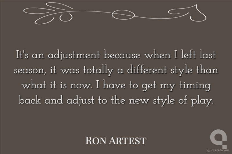 It's an adjustment because when I left last season, it was totally a different style than what it is now. I have to get my timing back and adjust to the new style of play.