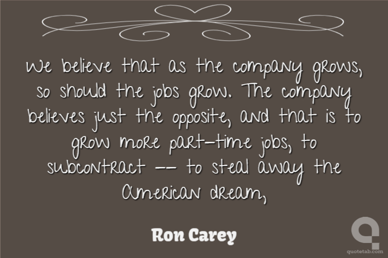 We believe that as the company grows, so should the jobs grow. The company believes just the opposite, and that is to grow more part-time jobs, to subcontract -- to steal away the American dream,