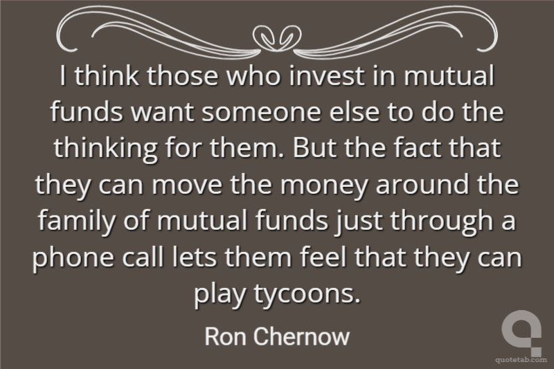 I think those who invest in mutual funds want someone else to do the thinking for them. But the fact that they can move the money around the family of mutual funds just through a phone call lets them feel that they can play tycoons.
