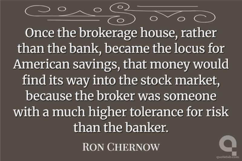 Once the brokerage house, rather than the bank, became the locus for American savings, that money would find its way into the stock market, because the broker was someone with a much higher tolerance for risk than the banker.