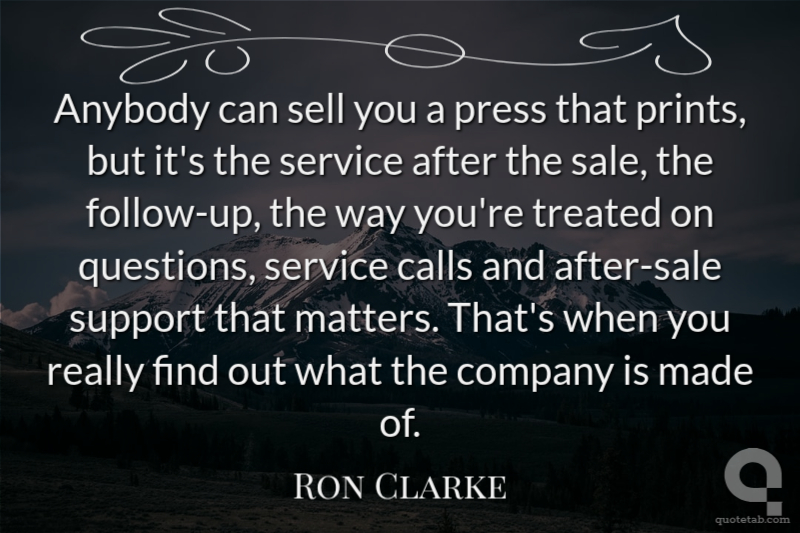 Anybody can sell you a press that prints, but it's the service after the sale, the follow-up, the way you're treated on questions, service calls and after-sale support that matters. That's when you really find out what the company is made of.
