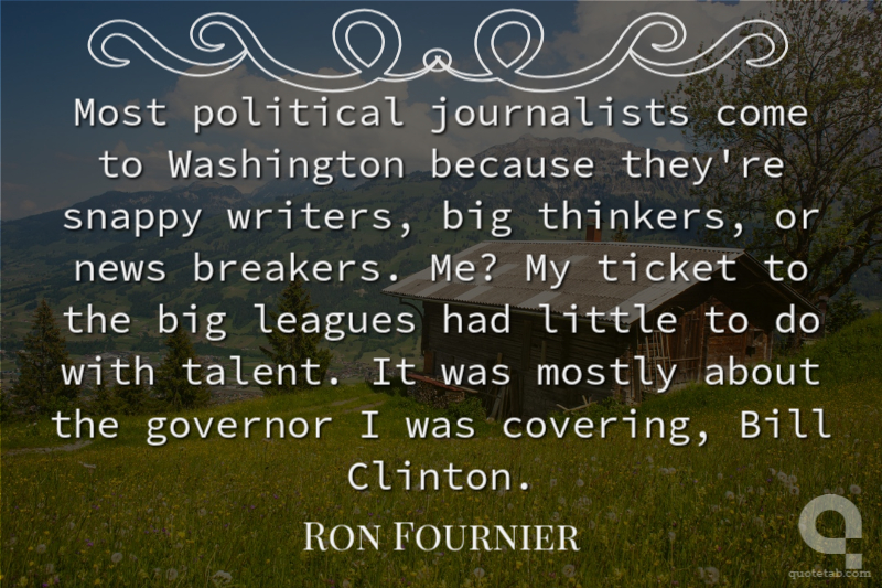 Most political journalists come to Washington because they're snappy writers, big thinkers, or news breakers. Me? My ticket to the big leagues had little to do with talent. It was mostly about the governor I was covering, Bill Clinton.