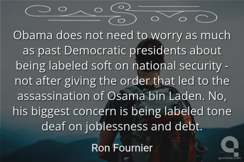 Obama does not need to worry as much as past Democratic presidents about being labeled soft on national security - not after giving the order that led to the assassination of Osama bin Laden. No, his biggest concern is being labeled tone deaf on joblessness and debt.