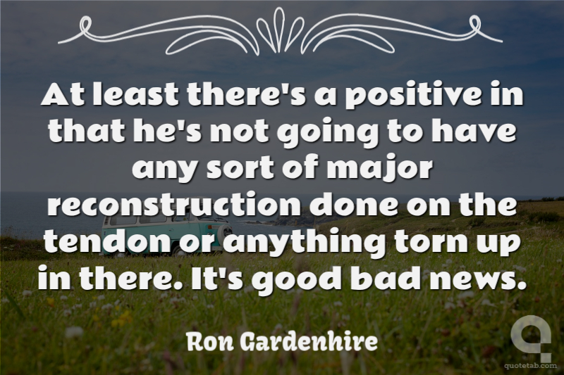 At least there's a positive in that he's not going to have any sort of major reconstruction done on the tendon or anything torn up in there. It's good bad news.