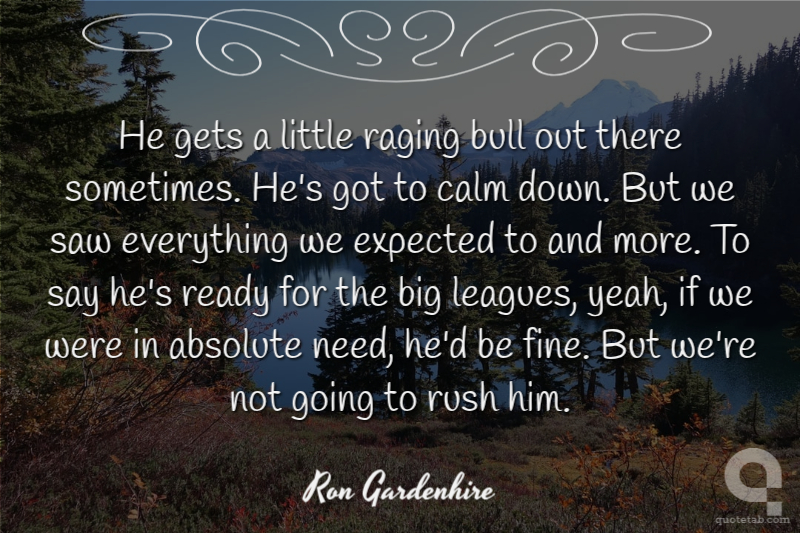 He gets a little raging bull out there sometimes. He's got to calm down. But we saw everything we expected to and more. To say he's ready for the big leagues, yeah, if we were in absolute need, he'd be fine. But we're not going to rush him.