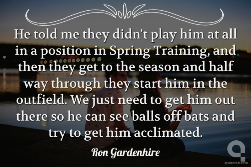 He told me they didn't play him at all in a position in Spring Training, and then they get to the season and half way through they start him in the outfield. We just need to get him out there so he can see balls off bats and try to get him acclimated.